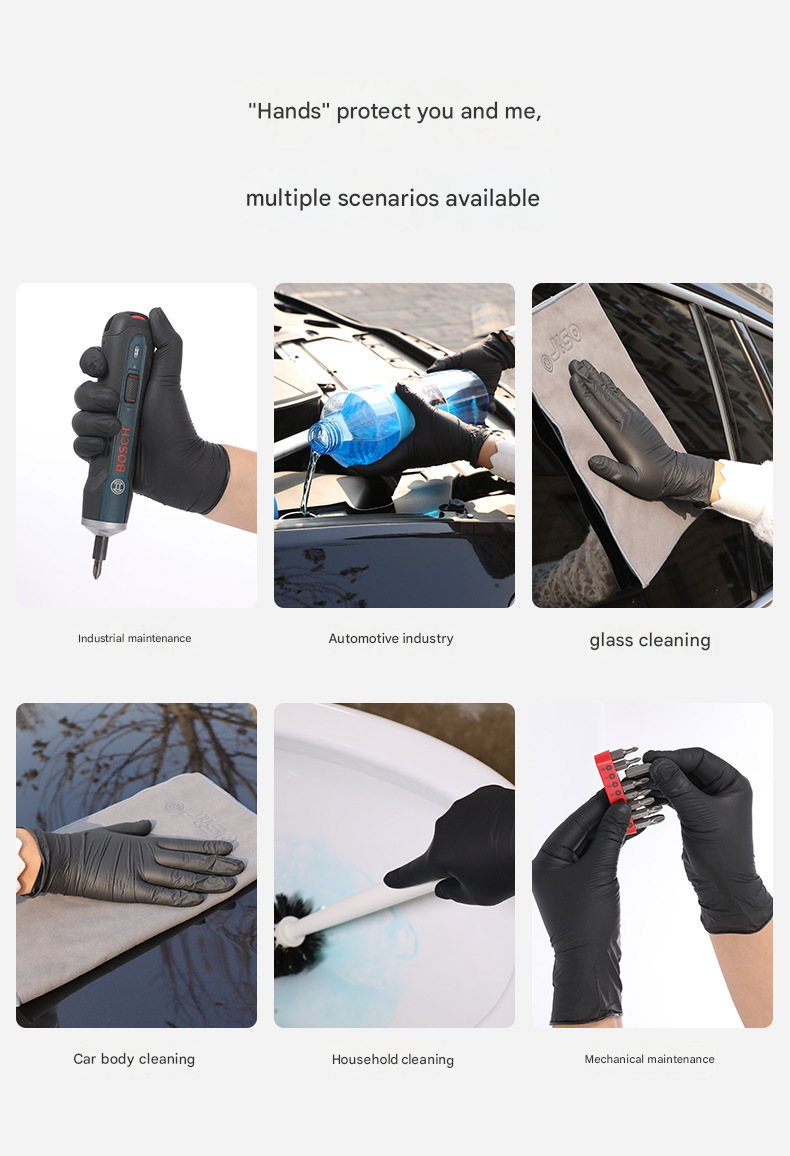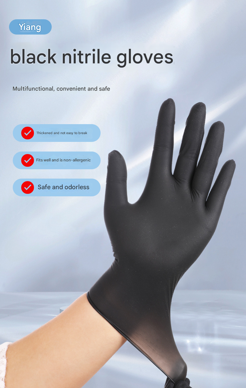 Disposable black thickened durable beauty catering household protective food grade gloves L size 100